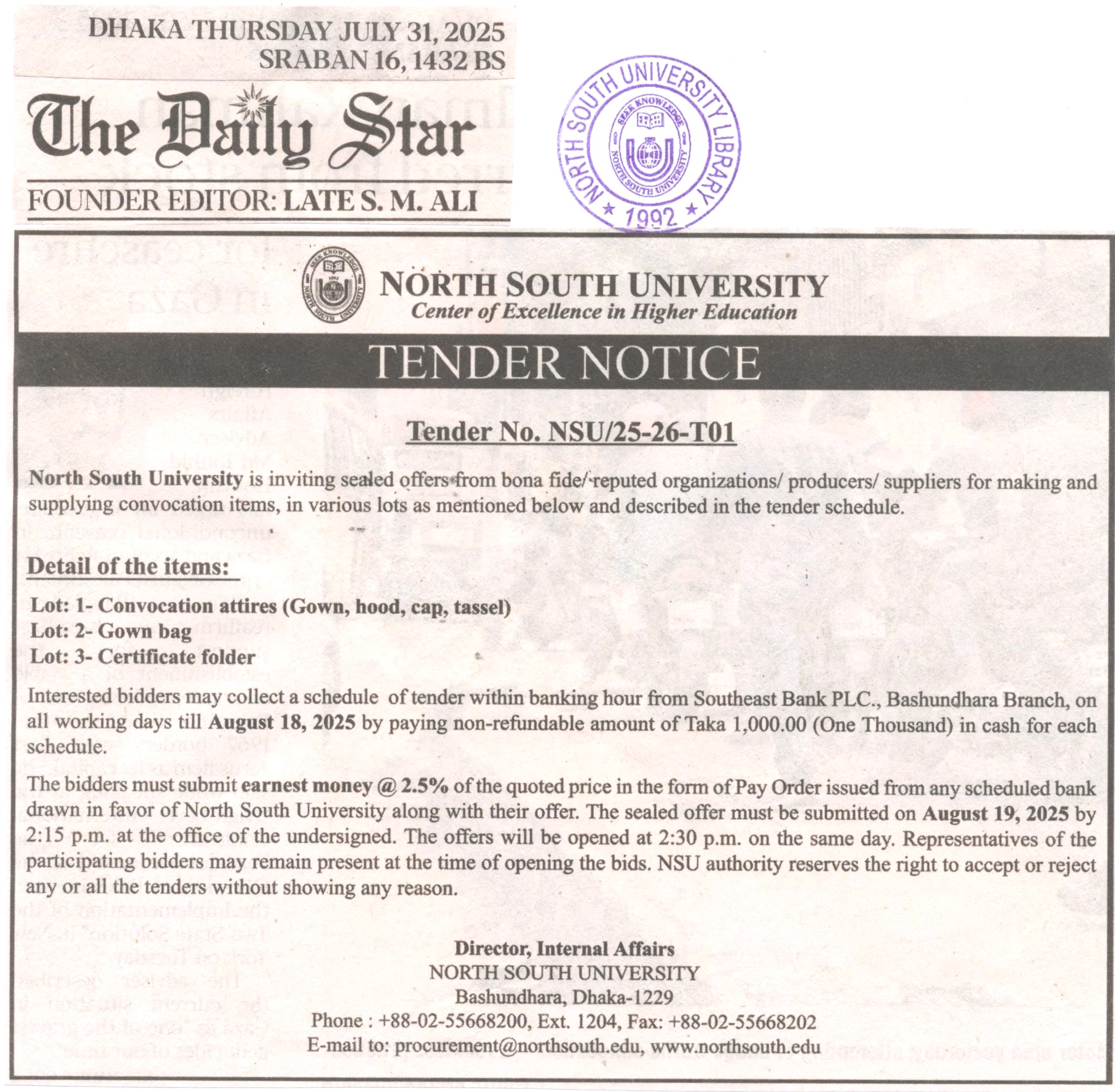 - 2025-07-31 Tender No. NSU-25-26- T-01 (Convocation Attires)- The Daily Star 001.jpg